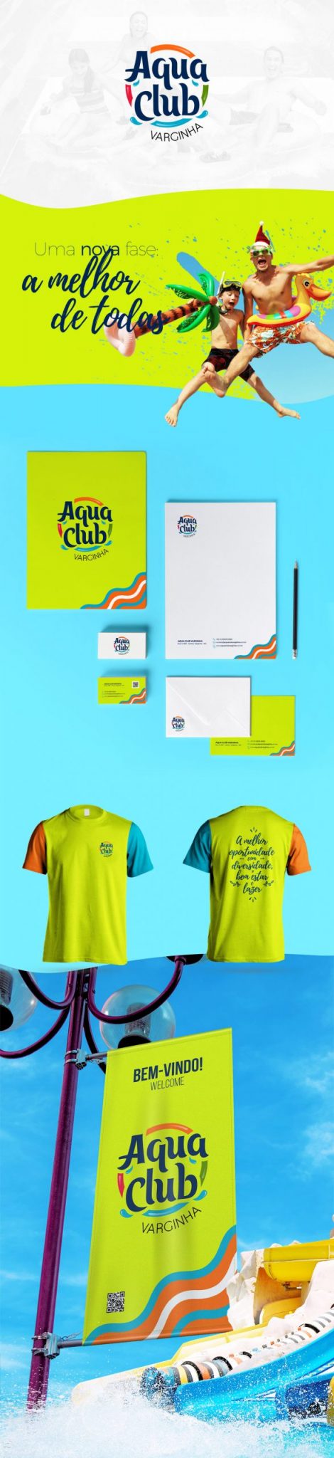 O logo do Aqua Club Varginha foi pensado para transmitir a imagem de descontração e alegria, formando um conjunto harmônico que sintetiza o ideal do clube de levar diversão e lazer a todos.