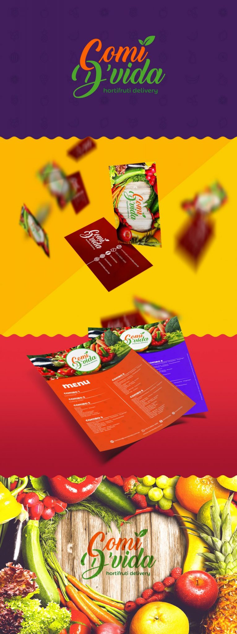 A empresa Comi D’ Vida é um Hortifruti Delivery e todo o projeto visual foi realizado pensando para agradar pelos detalhes, remetendo as cores vivas, a natureza, transmitindo a leveza da marca e a alegria de uma vida saudável. A logo, com fontes curvas, faz referência as frutas e legumes. A Comi D’ Vida foi pensada para gerar credibilidade, ainda mais por se tratar de produtos saudáveis.