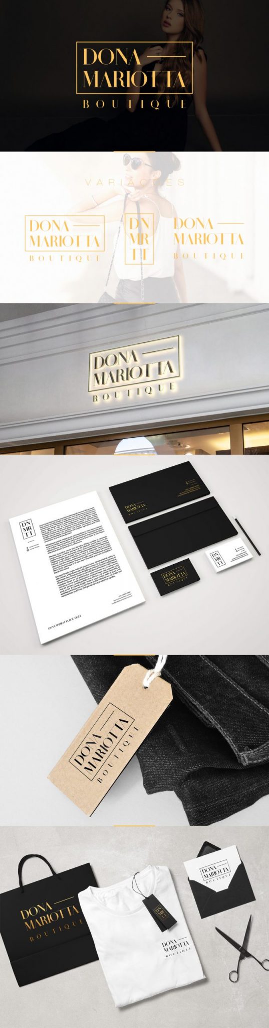 Dona Mariotta é uma Boutique fashion que preza pela qualidade da marca e busca construir uma imagem diferenciada. As cores remetem a realeza com contornos firmes, para fixar a imponência e a credibilidade. A Dona Mariotta tem a versatilidade e os traços que remetem a produtos de boa classe.