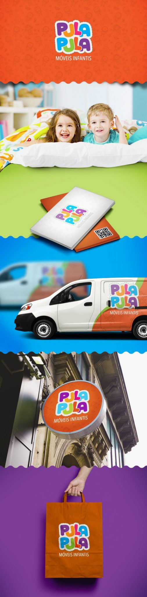 Sua marca precisa ser lembrada pelos seus consumidores. Por isso, sua identidade visual precisa estar coerente com as tendências do segmento. No Job a seguir foram utilizadas cores brilhantes e contrastadas para atrair a atenção, a tipografia redonda lembra o design dos brinquedos e as letras distorcidas tem por intenção criar o movimento do “pular”.